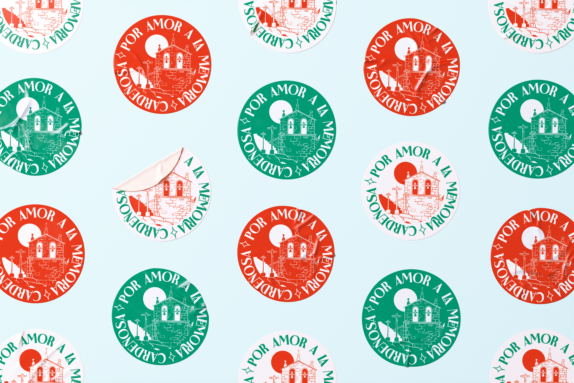 Pegatina circular "Por Amor a la Memoria" con imagen de la Ermita del Cristo.
