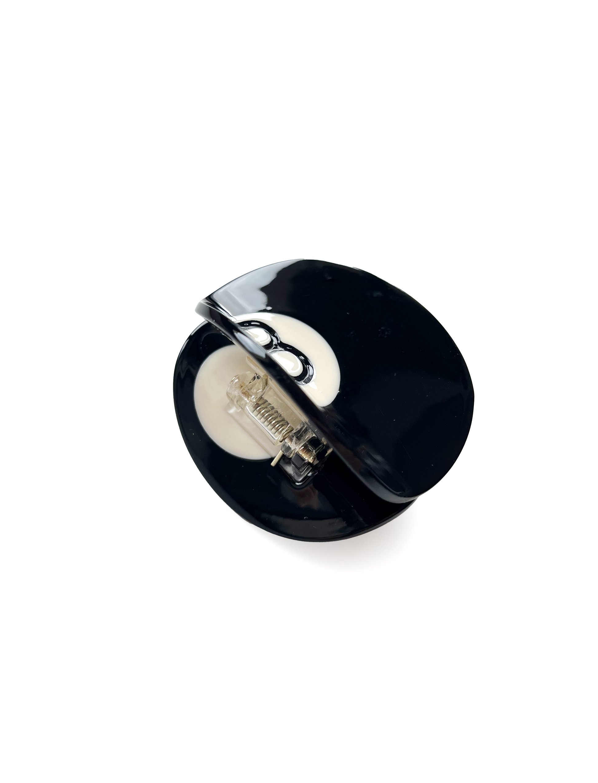 Pinza de acetato para el pelo, con forma de bola 8 de billar, color negro.