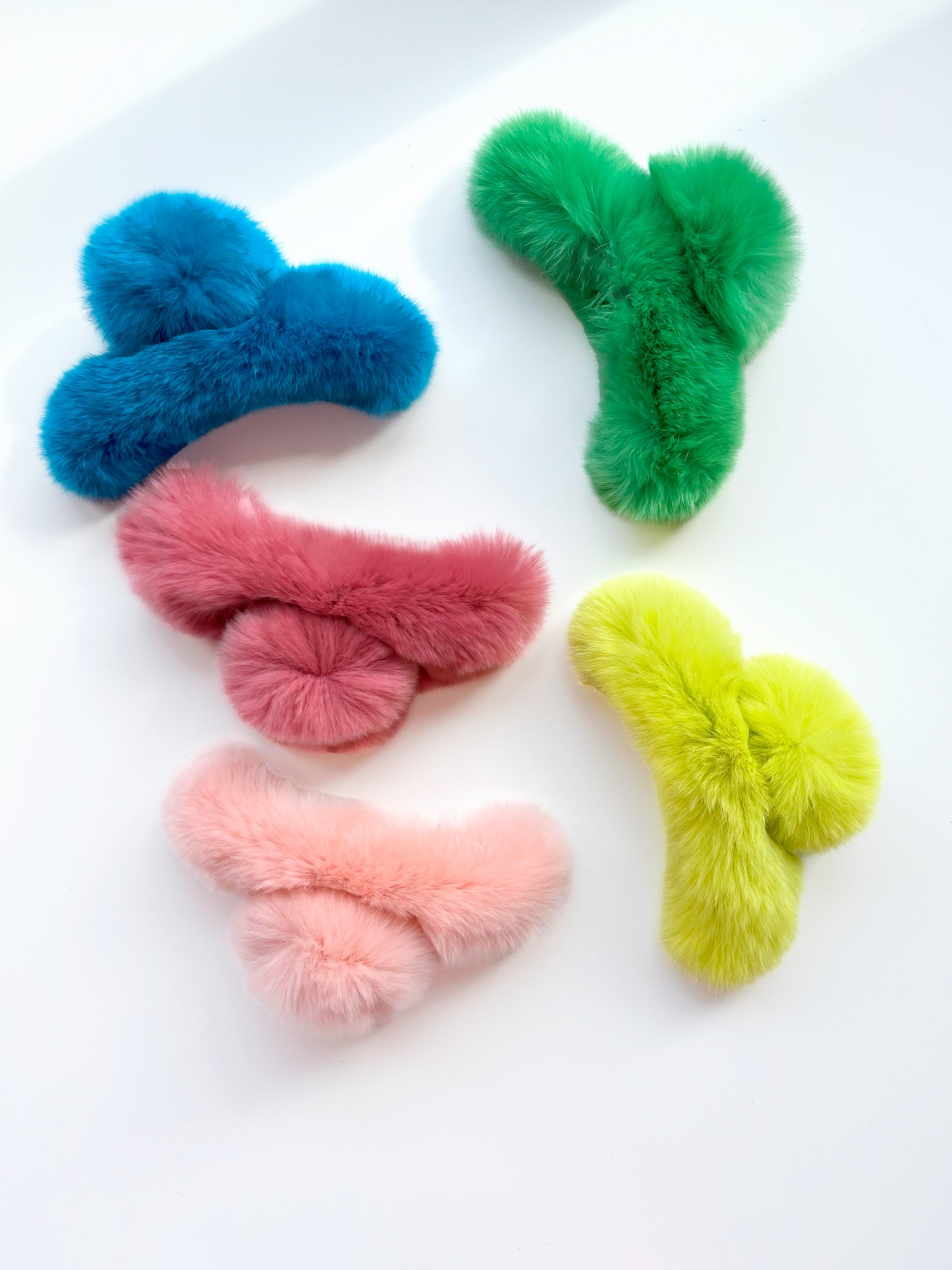 Pinza para el pelo, pinza de acetato en forma de garra, forrada de pelo sintético de alta calidad extrasuave.